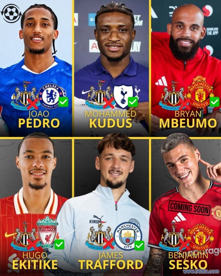 羽毛球资讯体育赛事分别是姆贝莫(加盟曼联)、德拉普(加盟切尔西)、若昂-佩德罗(加盟切尔西)、库杜斯(加盟热刺)、埃基蒂克(加盟利物浦)、库尼亚(加盟曼联)、怀森(加盟皇马)和特拉福德(加盟曼城)。