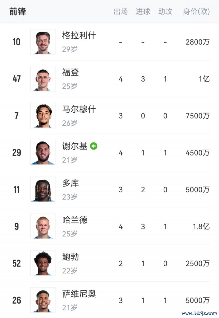 曼城锋线↓