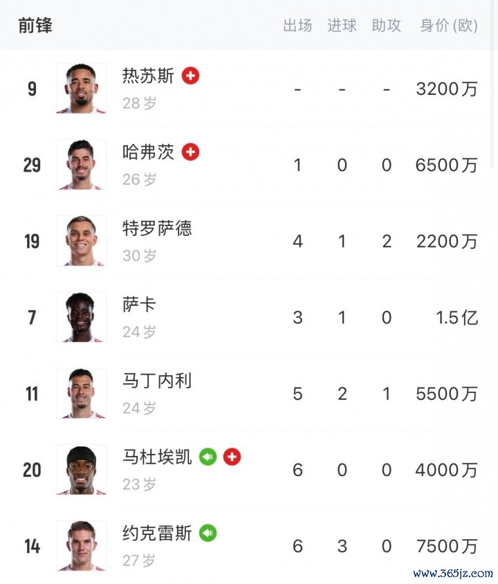 萨卡刚复出🤕枪手锋线再伤一人,棍哥休2月+哈弗茨热苏斯还没好