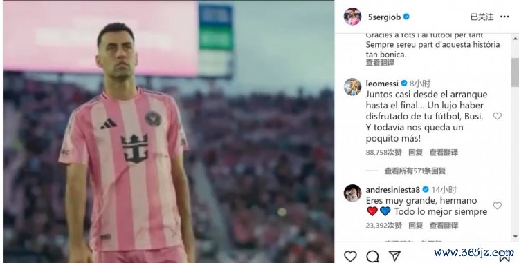 9月27日讯 布斯克茨社媒宣布本赛季结束后退役,梅西留言致敬。