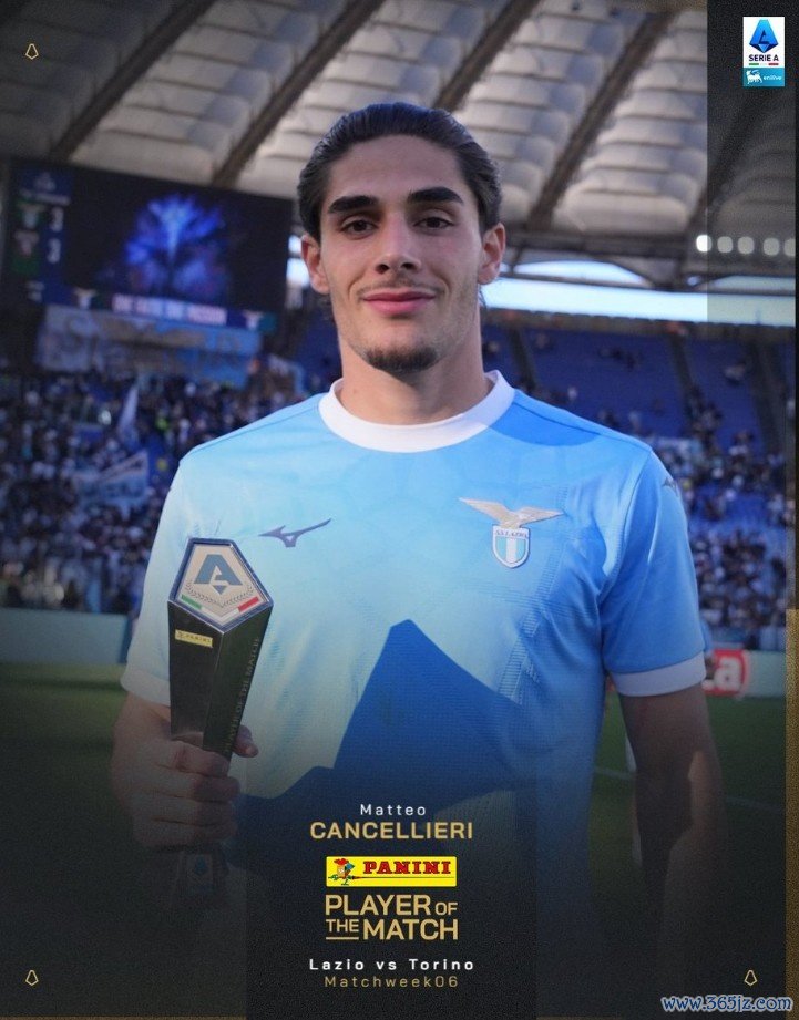 梅开二度,意甲官方:坎塞利耶里当选拉齐奥3-3都灵全场最佳