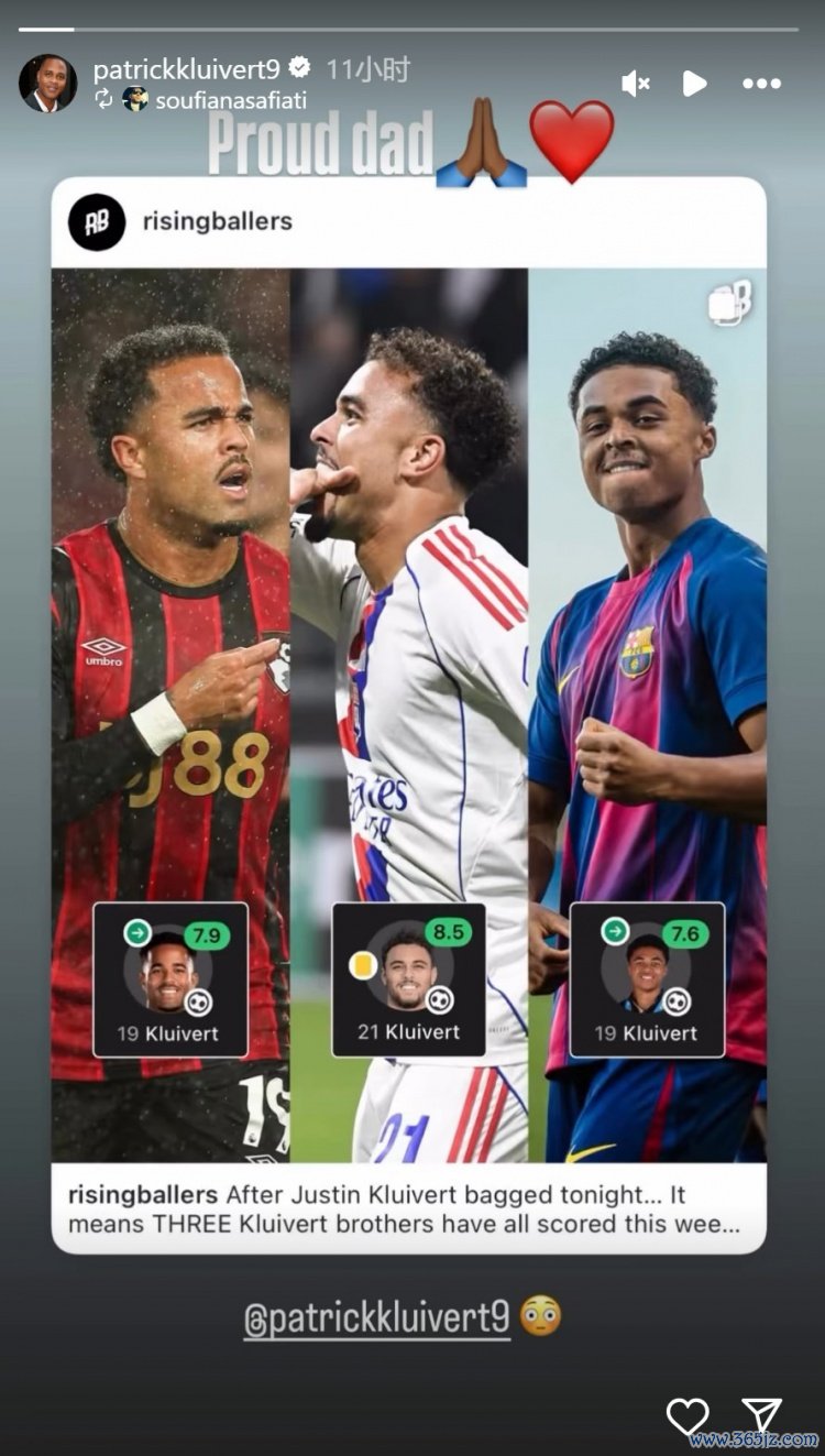 10月4日讯 荷兰足坛名宿帕特里克-克鲁伊维特更新社媒动态,庆祝三个儿子本周取得进球。