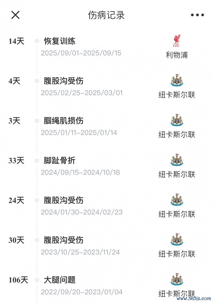 伊萨克此前曾3次遭遇腹股沟伤情↓