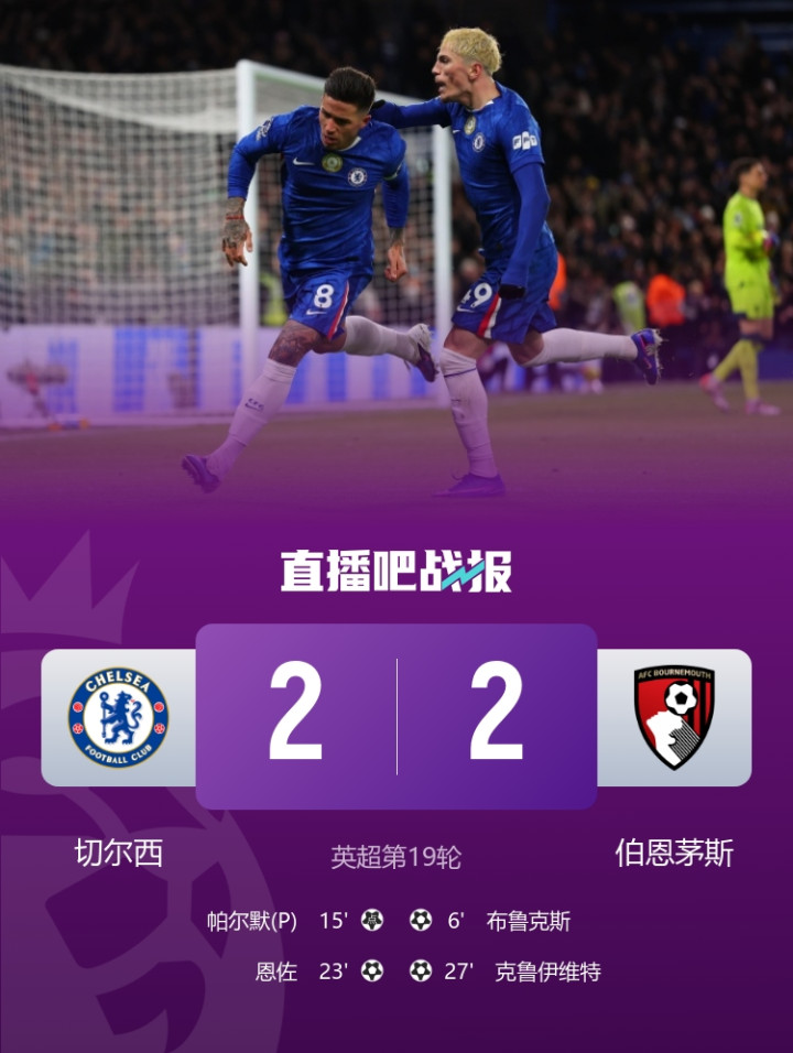 切尔西2-2伯恩茅斯
